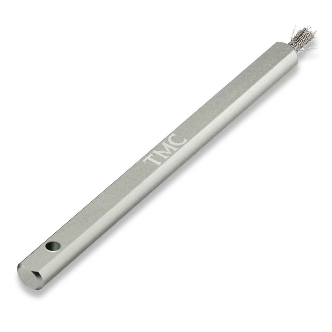 A small-sized precision brush. Great for combing the fur out of Deer hair, teasing out small amounts of dubbing etc. The light aluminum shaft offers the precision to handle in comfort. The unrollable squared shape and bright anodized finish for easier recognition on your tying desk.
