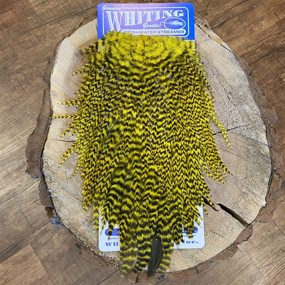 Whiting Freshwater Streamer Saddle – Schlappen/Bugger. Perfect for wooley bugger hackle, steamer schlappen, streamer tails, and saltwater flies.